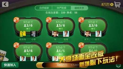 天天德州最新版本中的玩法公平公正可以让玩家们玩的开心、赢的放心,高度自由的棋牌玩法可以让玩家们随时选择模式来畅玩,同时每天的幸运大转盘也让玩家们获取数万金币哦,感兴趣的玩家们,欢迎前来本网站下载天天德州最新版体验一下吧。