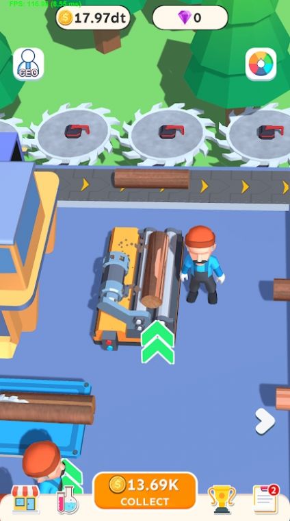 2.收集金币升级工具,解锁新伐木设备,提高技巧;