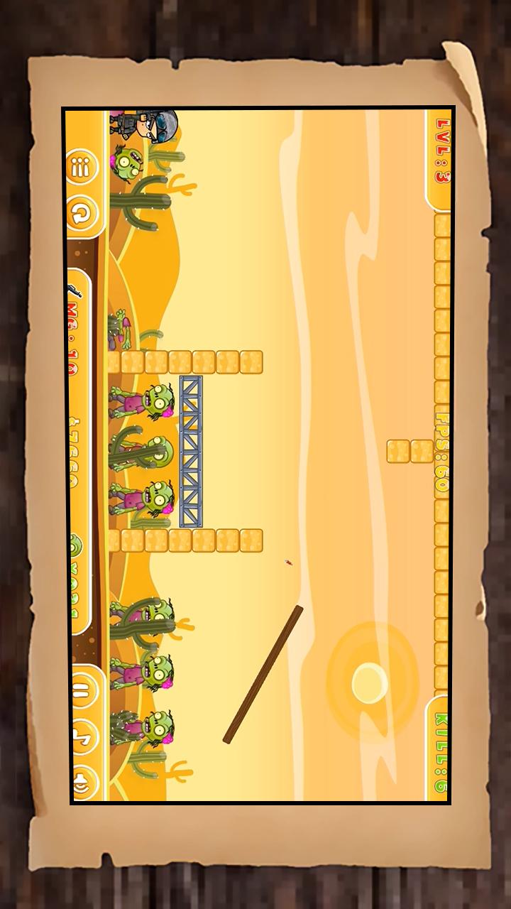 4、在每个关卡中,利用物理反弹机制发射子弹,消灭所有僵尸顺利通关,解锁更多精心设计关卡。