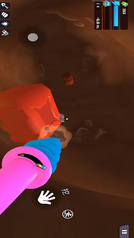 3、玩法操作围绕着挖掘展开,通过控制铲子方向与力度开辟路径,避免挖掘过程中遇到的障碍。