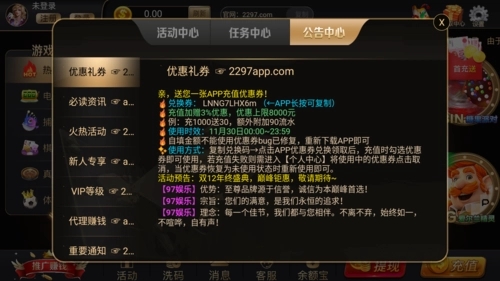 97国际游戏官网手机版是一款很多小伙伴都青睐的棋牌游戏,五湖四海的小伙伴聚集在这里,各种各样的棋牌游戏种类,简单的操作方法,每天登陆都会有不同的游戏福利免费送,让你收获更多的救济金,喜欢的赶快来下载97国际游戏官网手机版体验吧。